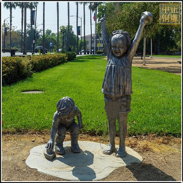 公園與游樂場是擺放兒童雕塑的理想之地。這些地方通常是孩子們嬉戲玩耍的樂園,雕塑的加入不僅為孩子們提供了與藝術互動的機會,還能為他們的游戲增添更多的樂趣。例如,在公園的草坪上,可以擺放一組描繪孩子們在陽光下奔跑的雕塑,這不僅與公園的自然環境相得益彰,還能引發孩子們對美好生活的向往。
